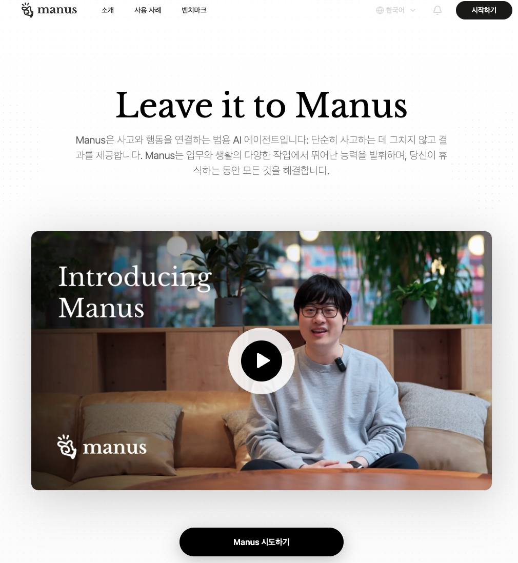 • “애니메이션 전공 학생이며, 게임 개발 및 포트폴리오 제작에 Manus AI를 활용할 예정입니다.”